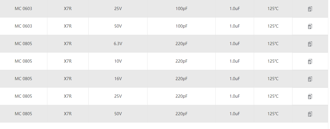 MC:X7R通用電容 產品型號:0201 0402 0603 0805